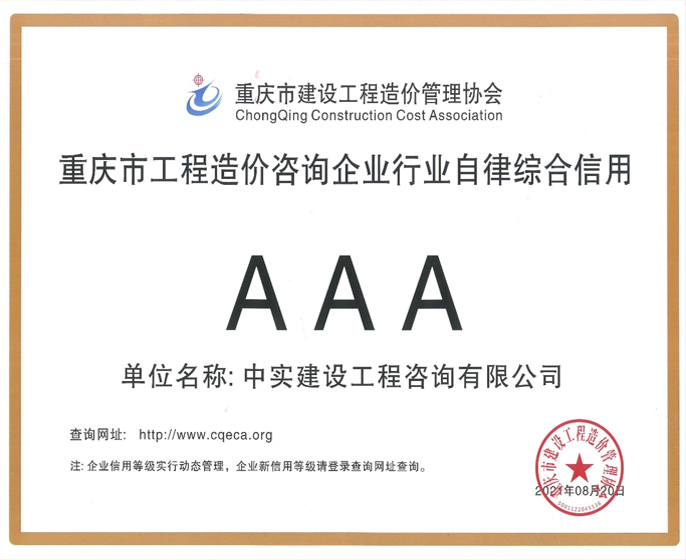 喜報(bào)!中實(shí)咨詢榮獲造價(jià)咨詢企業(yè)AAA級行業(yè)自律綜合信用評價(jià)等級
